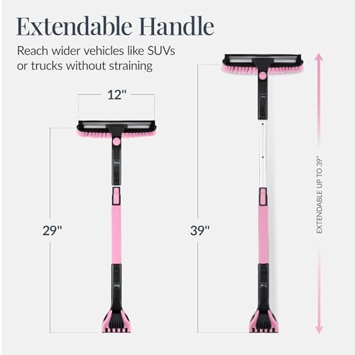 4-in-1 Extendable Snow Brush Shovel Pink